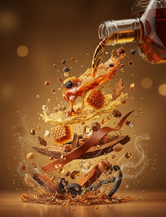 Base - Amber Woods, Tonka Bean, smoke, whiskey